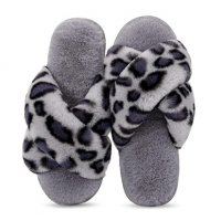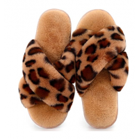 女款豹紋PV絨飛邊拖鞋